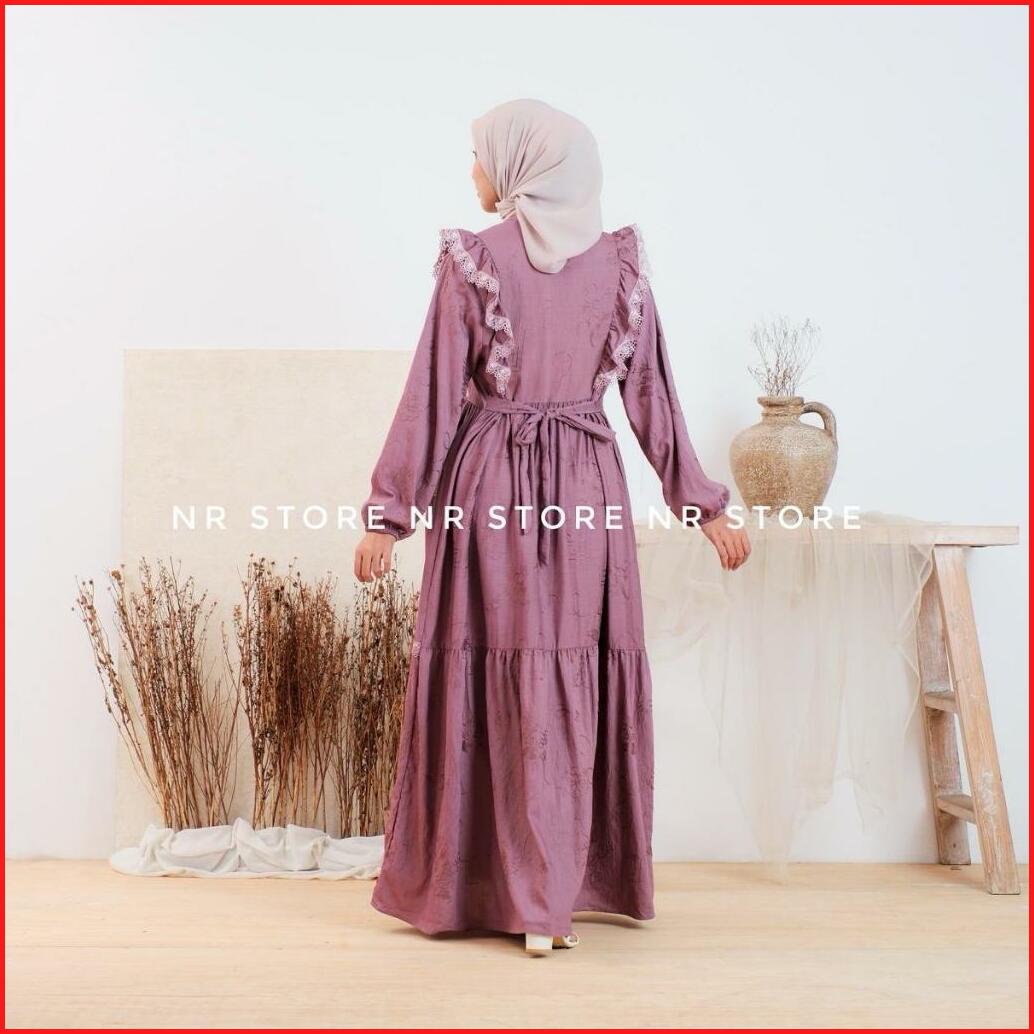 Nr-slavina Dress Katun Linen Full Bordir Adem Dress Embroidery Renda Terbaru Busui