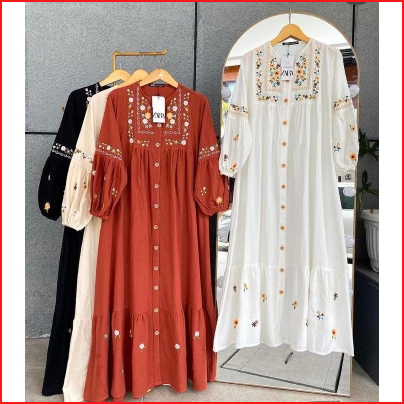 Promo Airish Linen Dress Gamis Embroidery Katun Bordir Ibu Dan Anak