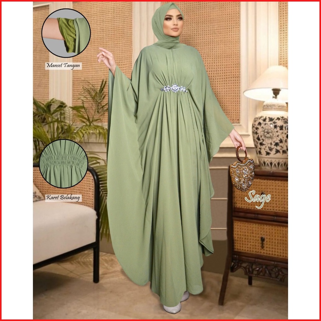 Qaira Fashion Rehana Kaftan Premium - Kaftan Pesta Muslim Rehana Premium Jumbo All Size Fit Dari L Sampai Xxxl