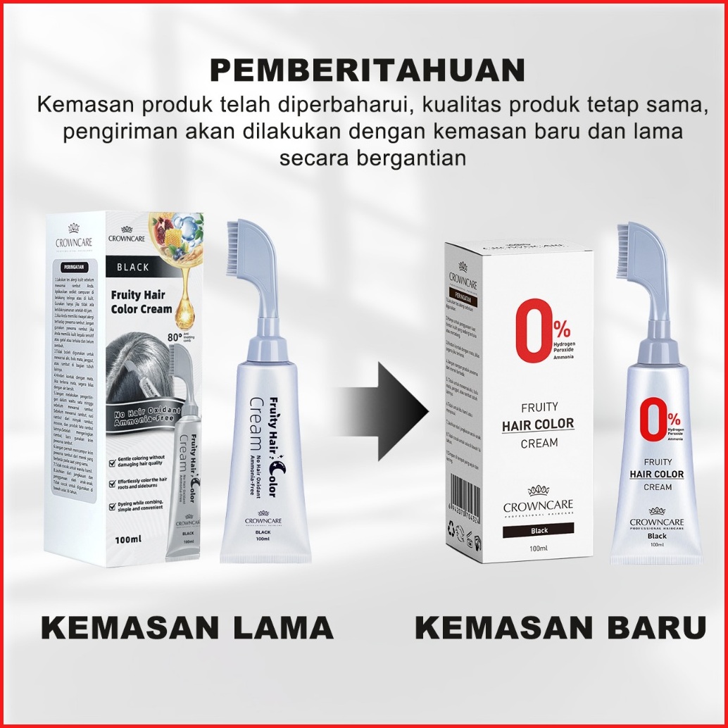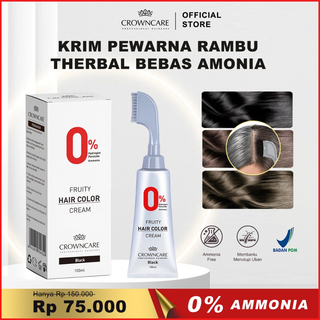 Crowncare Pewarna Rambut - Hair Coloring Cream Alami Pewarna Rambut Ammonia Free Anti Uban Warna Hitam Coklat Gelap Aman