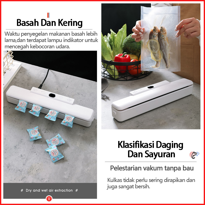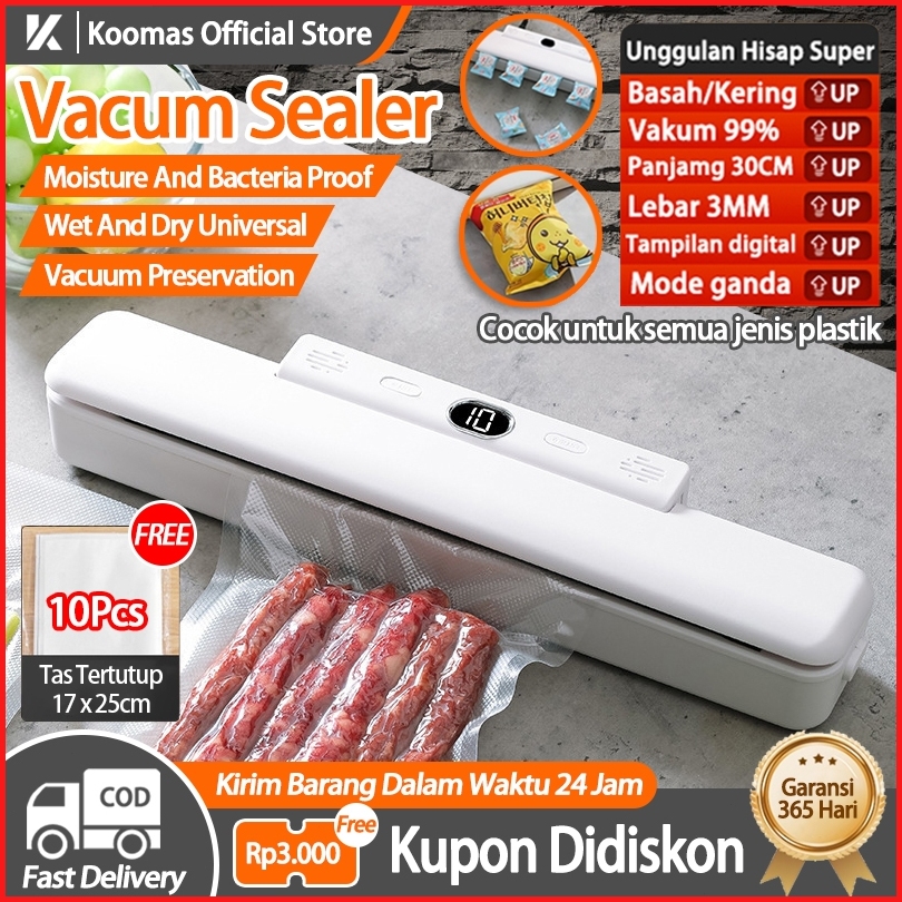 Koomas Vacum Sealer Alat Vakum Makanan Alat Vacum Makanan Frozen Mesin Vacum Makanan Free 10pcs Plastik Vacum