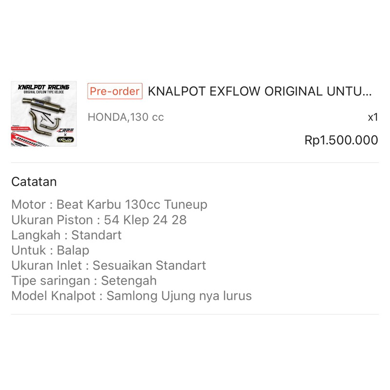 EXFLOW EXHAUSTS ORIGINAL UNTUK SEMUA MOTOR MATIC & BEBEK BY REQUEST DAILY/RACE