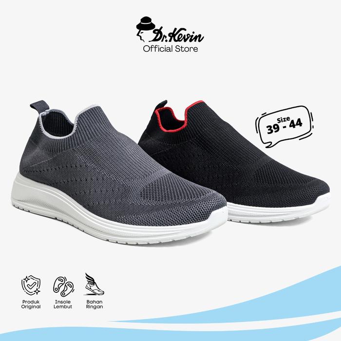 Sepatu Sporty Dr. Kevin Sepatu Sport Pria Men Sneakers Sekolah Flyknit Slip On 889-087 - Hitam, 40
