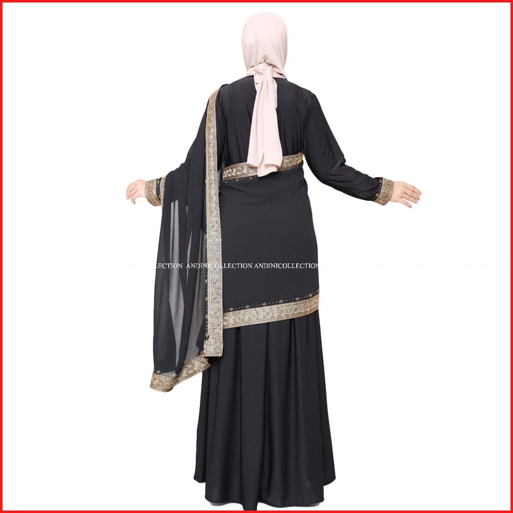 Andinicollection Abaya Turkey 130 Amarta Selendang India Hitam Putih Dewasa Muslim Bordir Dan Payet Mewah Vol 1
