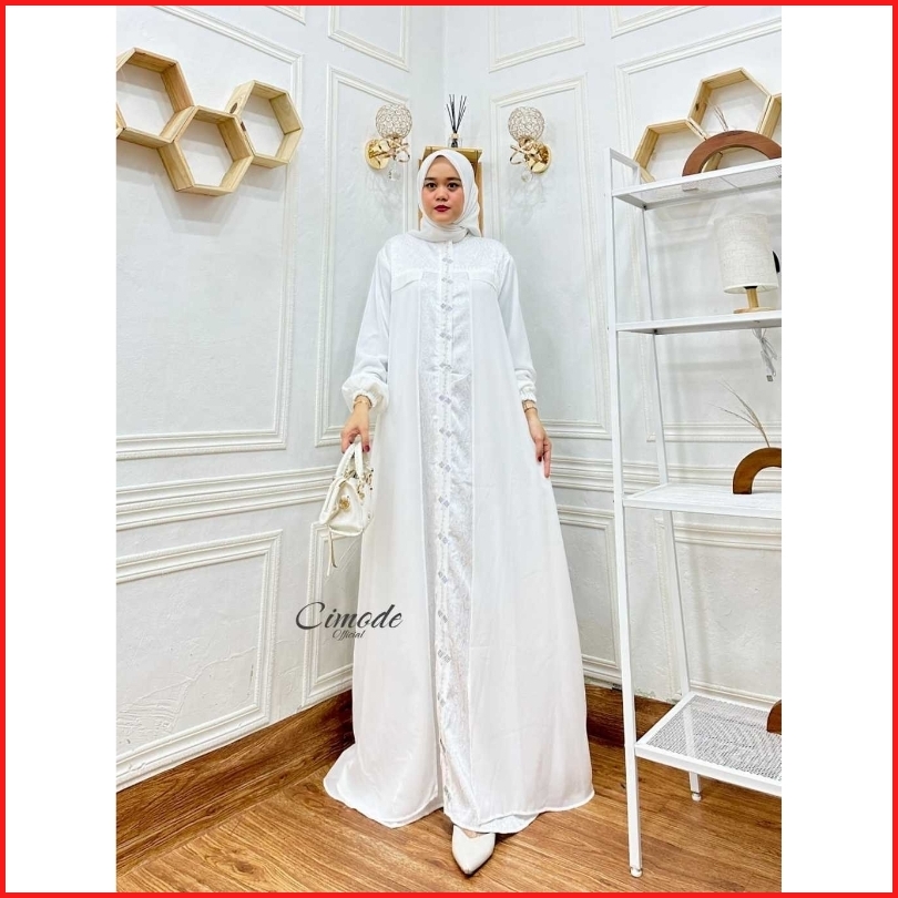 Gamis Putih Dress Wanita Terbaru Seruty Mix Jaguar Swarovski
