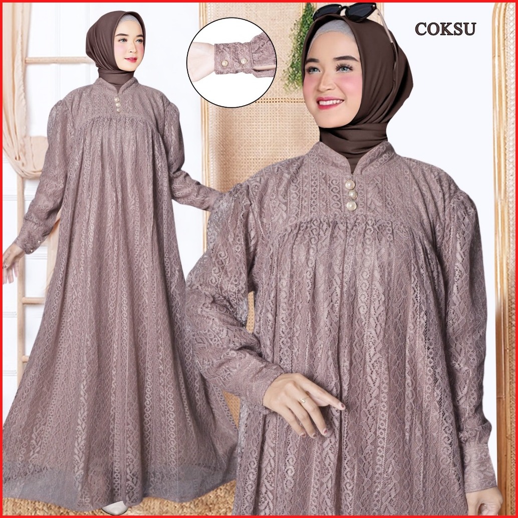 Qaira Fashion Zarima Gamis Jumbo Brukat Malika All Size Fit To Xxl
