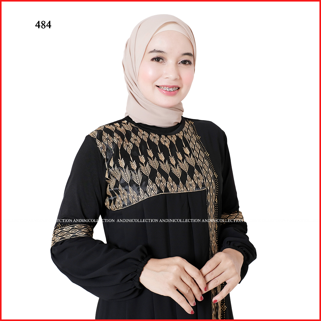 Andinicollection Abaya Turkey 484 Amarta Hitam Putih Remaja Dewasa Muslim Bordir Dan Payet Mewah
