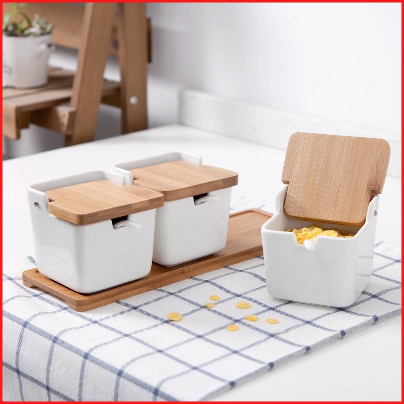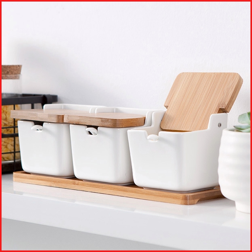 Pengatur Bumbu Dapur Tempat Bumbu Dapur 3pcs Keramik Free Sendok Ceramic Seasoning Jar 3pcs Free Spoon