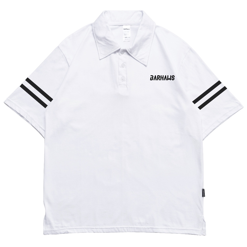[Mall] BARHAWS - Kaos Polo Rugby Oversize Pria Bahan Wangky Motif Striped Warna Putih Stylish Keren Nyaman Dipakai
