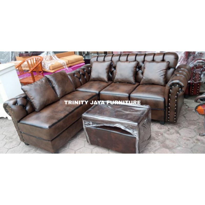 sofa ruang tamu SOFA L MEJA STENLIS BAHAN WOSH, OSCAR, KAIN, EMPUK (GRATIS MASKER)