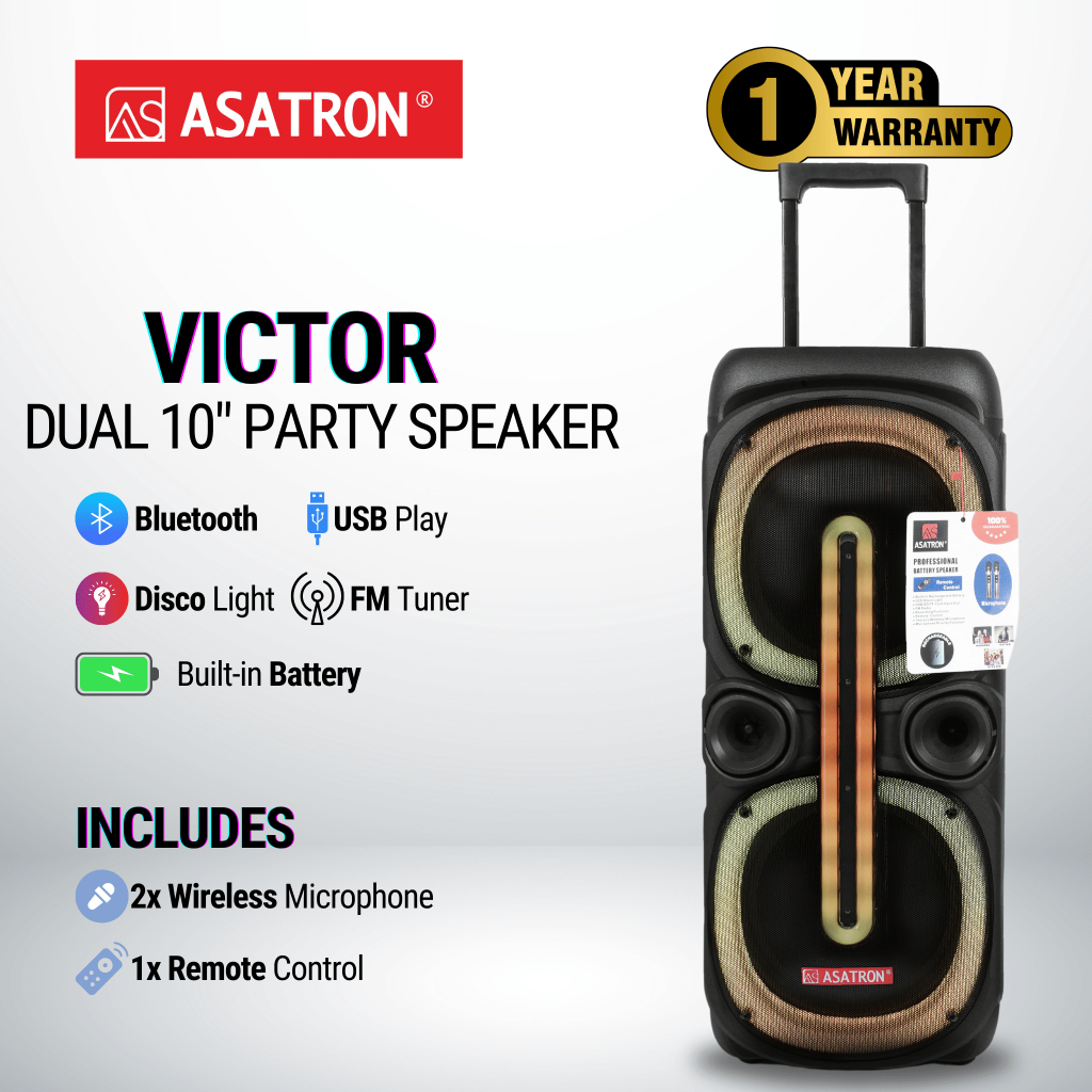 Asatron Victor Dual 10 Inch Bluetooth Party Speaker aktif karaoke pma polytron salon sound system