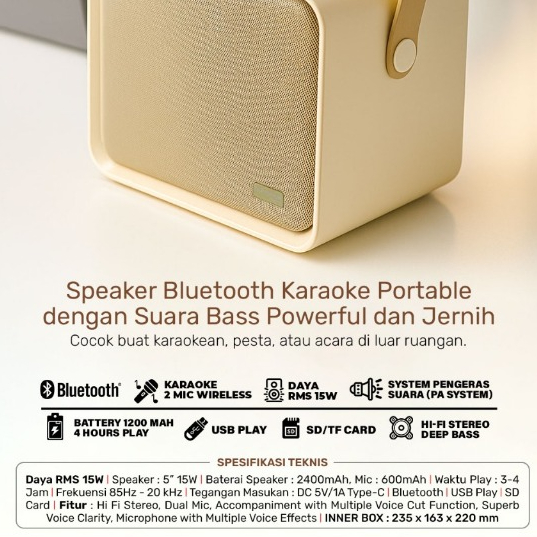 Advance V13 Speaker Bluetooth Karaoke Free 2 Mic Wireless 5 inch Garansi Resmi 1 Tahun