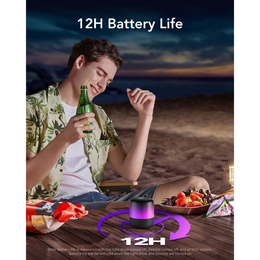Soundcore Glow Mini Portable Speaker, Bluetooth Speaker with 360° Sound, Light Show, 12H Battery, Customizable EQ and Li