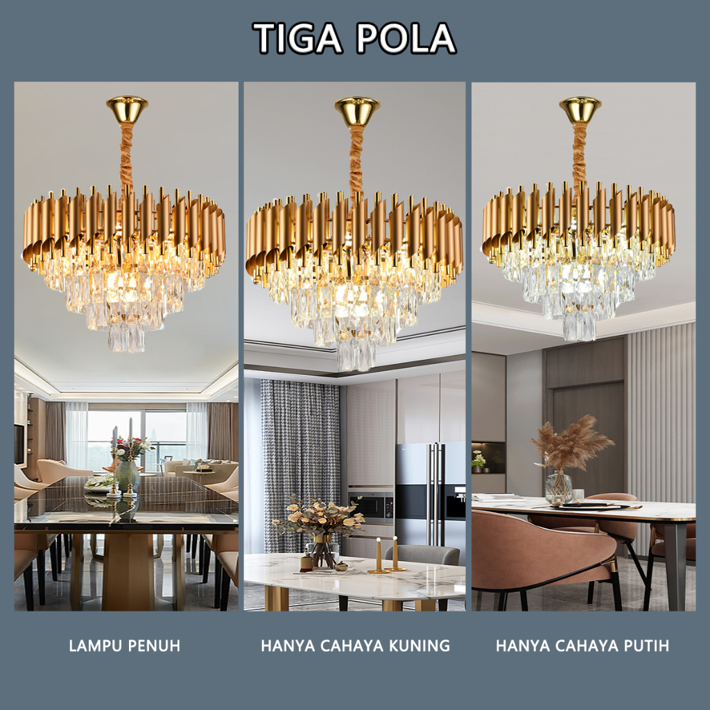 Lampu Kristal Mewah Ringan Ruang Tamu Dan Lampu Ruang Makan (40, 50cm) Peredupan Tiga Warna Bahan Original Premium