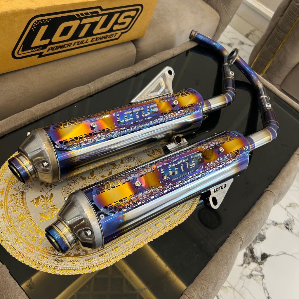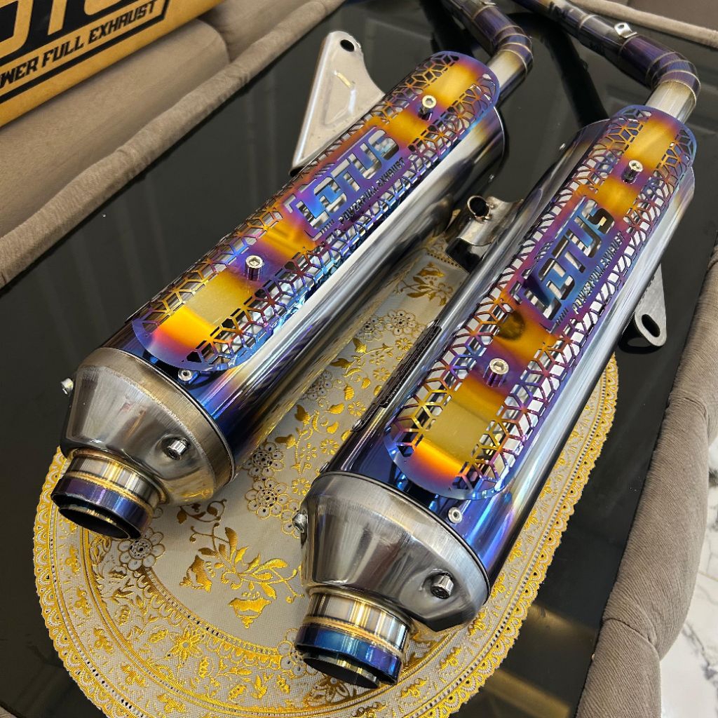 KNALPOT STANDAR RACING MONCONG SHIJIRO UNGU DAN MONCONG KENOCI TITAN ORIGINAL LOTUS 28 -38 BLUE GOLD STANLES FRE TAMENG