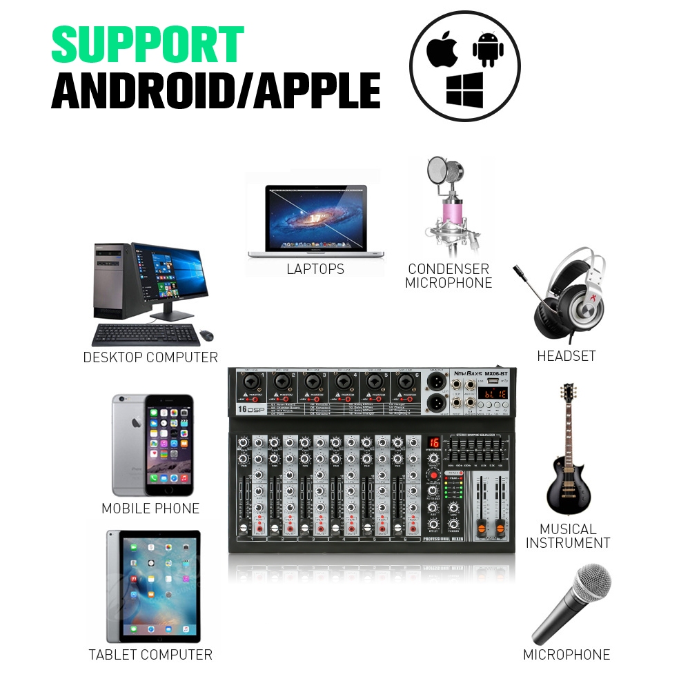 NEW BAXS MX06BT / MX04BT audio mixer professional Sound equalizer MX06BT / MX04BT 6/4-channel EQ effect