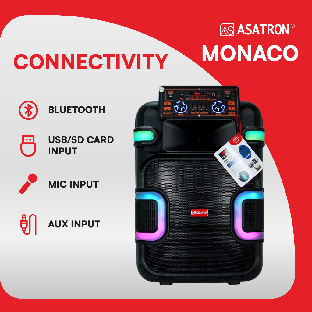 Asatron Monaco 15 Inch Bluetooth Party Speaker aktif blutut mic salon sound system subwofer karaoke
