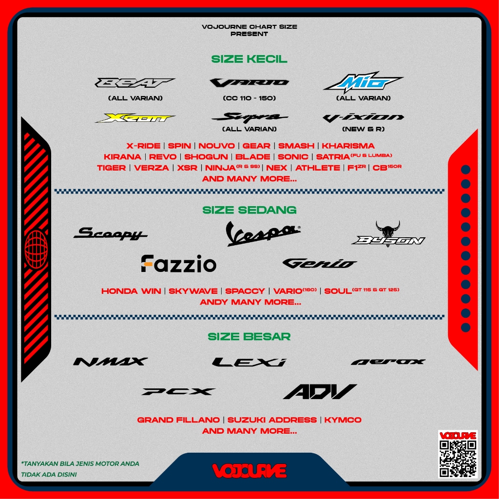 VOJOURNE - COVER JOK SARUNG JOK MOTOR PRINT UNIVERSAL PCX NMAX AEROX BEAT VARIO SCOOPY MIO NMAX KLX