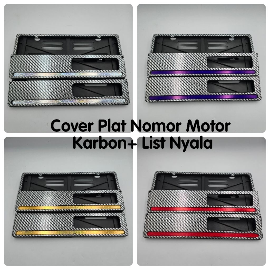 Dudukan Plat Nomor Motor Motif Karbon Dengan List Warna Menyala Universal Semua Motor - Variasi Motor