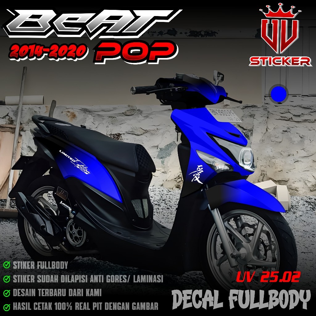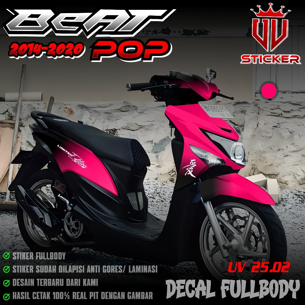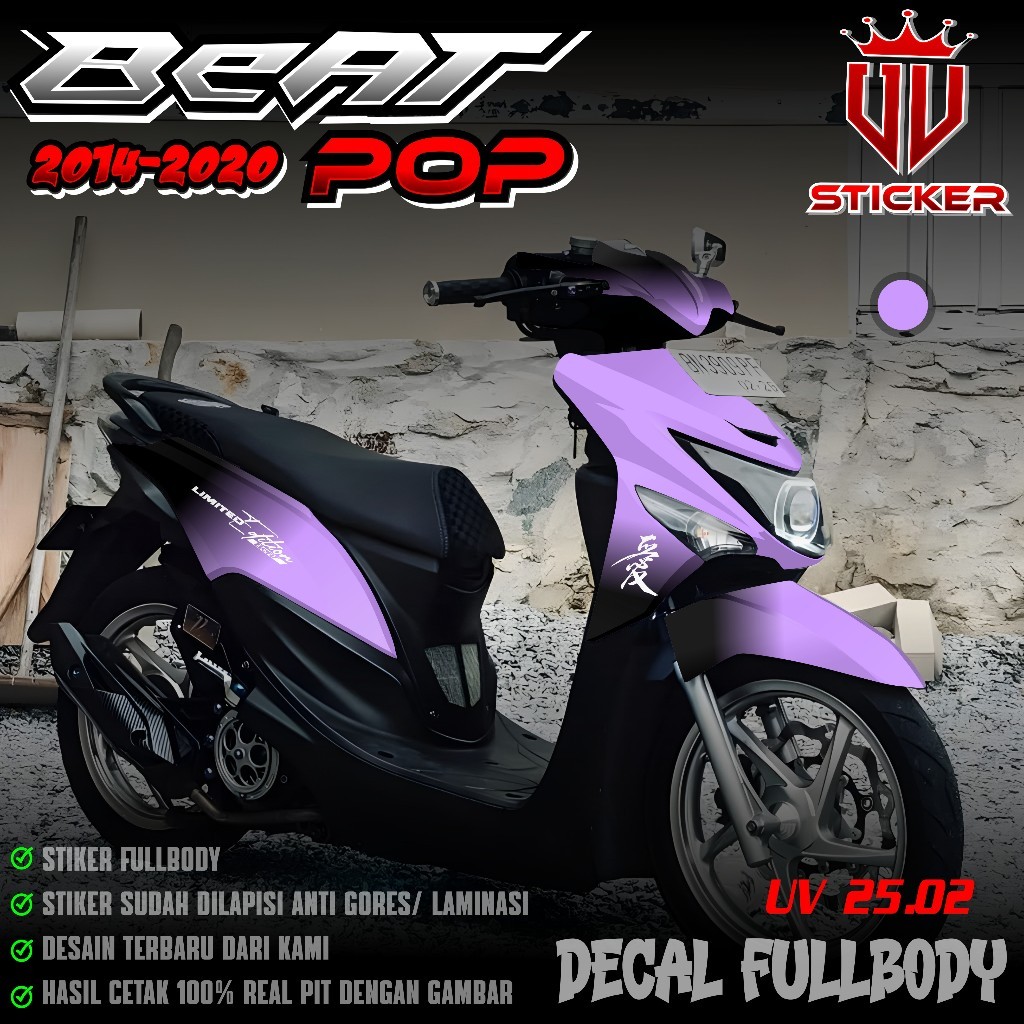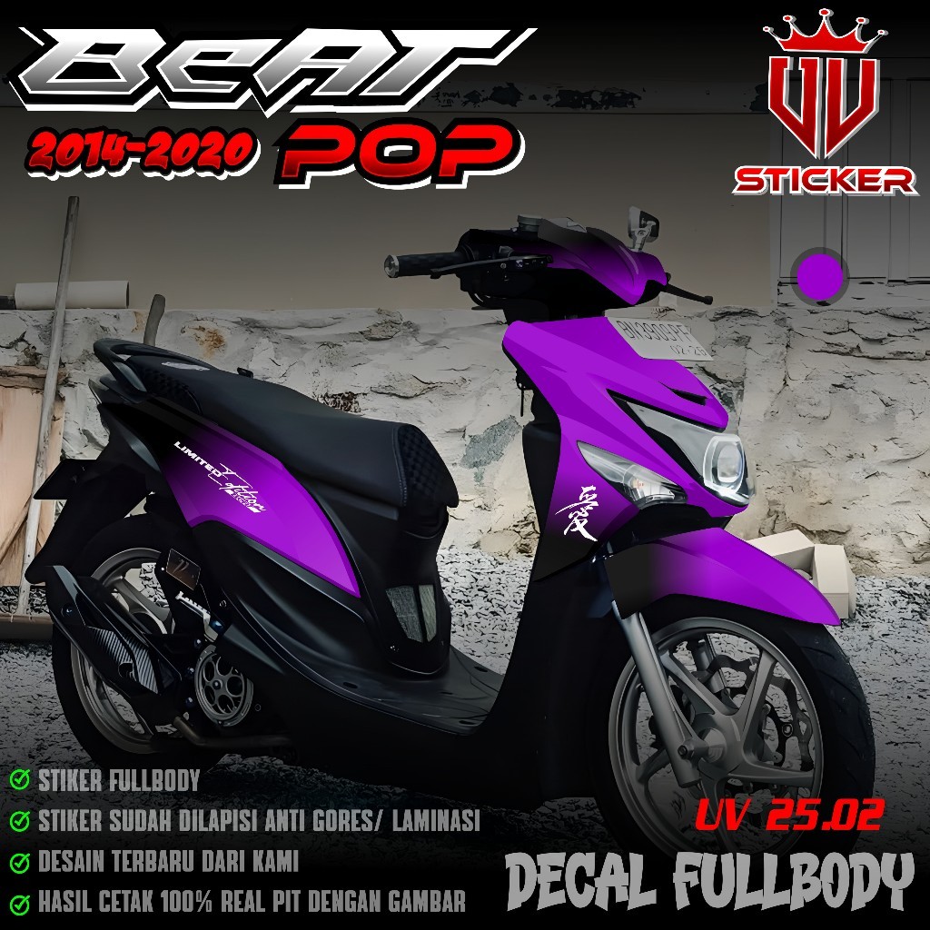 () TERBARU Sticker Decal Full Body Honda Beat POP 2014 2015 2016 2017 2018 2019 2020 - Decal Sticker Fullbody Beat POP desain Gradasi Hitam Hayabusa Limited Edition Lembayung Jepang UV 02