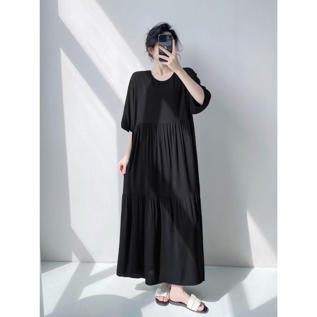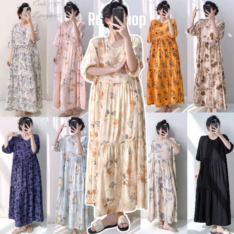 RULIF Daster panjang wanita lengan pendek rayon katun Allsize/Long Dress katun premium oneck 1738