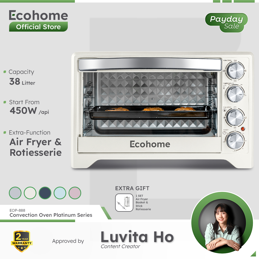 ECOHOME OVEN PLATINUM SERIES EOP888 38L CAPACITY LOW WATT WITH AIR FRYER AND ROTISSERIE ORIGINAL ECOHOME OFFICIAL STORE
