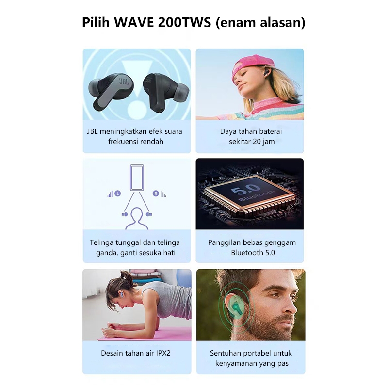 JBL Wave 200 True Wireless Deep Bass Sound Earbuds Water & Dust Resistant In-Ear Headset Bluetooth With Microphone For A