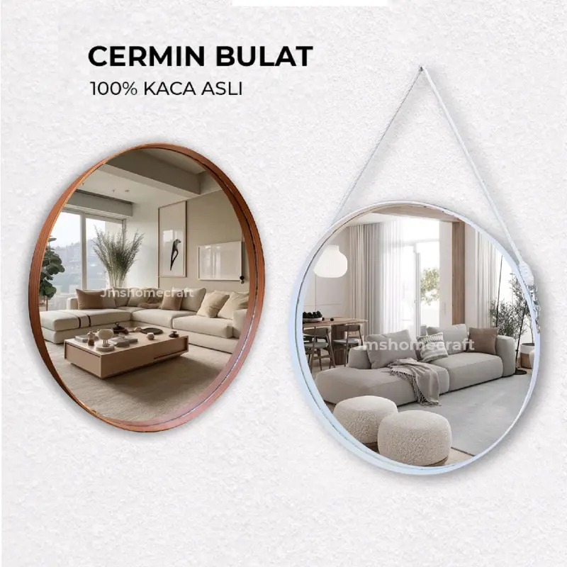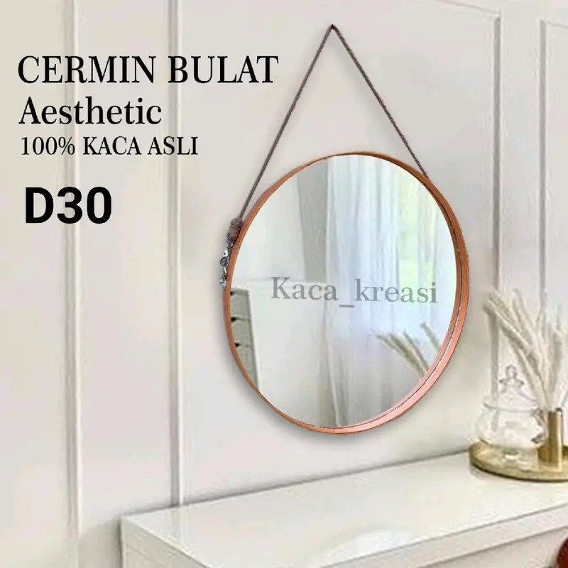 KACA AESTHETIC - CERMIN BULAT - KACA FRAMELESS 30cm x 30cm KACA CERMIN ( KACA ASLI )