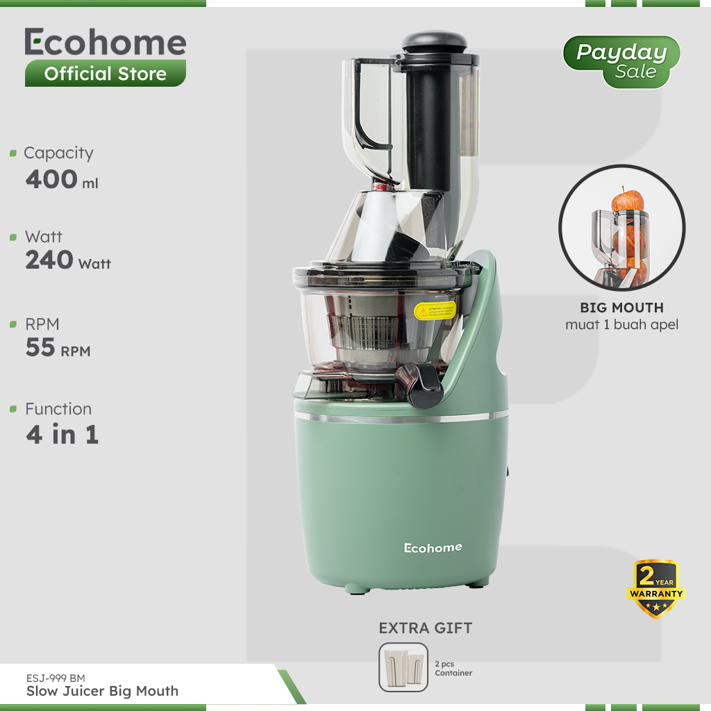 ECOHOME SLOW JUICER BIG MOUTH ESJ999BM 55 RPM PENGEKSTRAK BUAH LOW WATT EASY CLEAN MULTIFUNGSI ORIGINAL OFFICIAL STORE