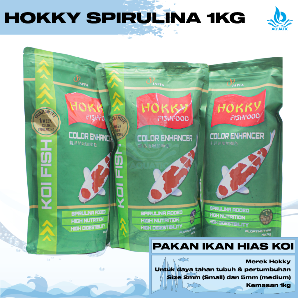 Makanan Pakan Ikan Koi Hokky Spirulina Color Enhancer Fish Food S/M/L 1KG