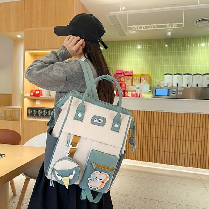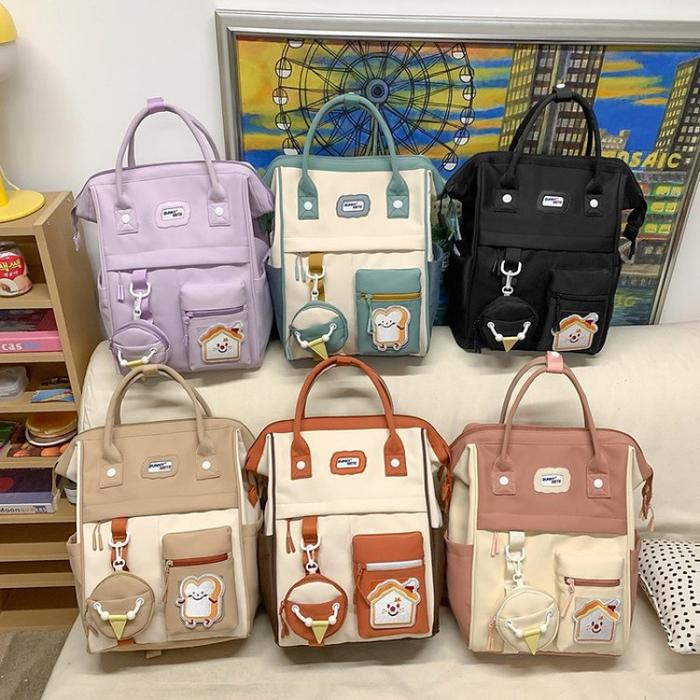 NINESTARS-TAS SEKOLAH MANIS KOREA RANSEL BERKAPASITAS BESAR RANSEL KULIAH TAS TRAVEL MODIS UNTUK WANITA HIMEJIBACKPACK - BLACK
