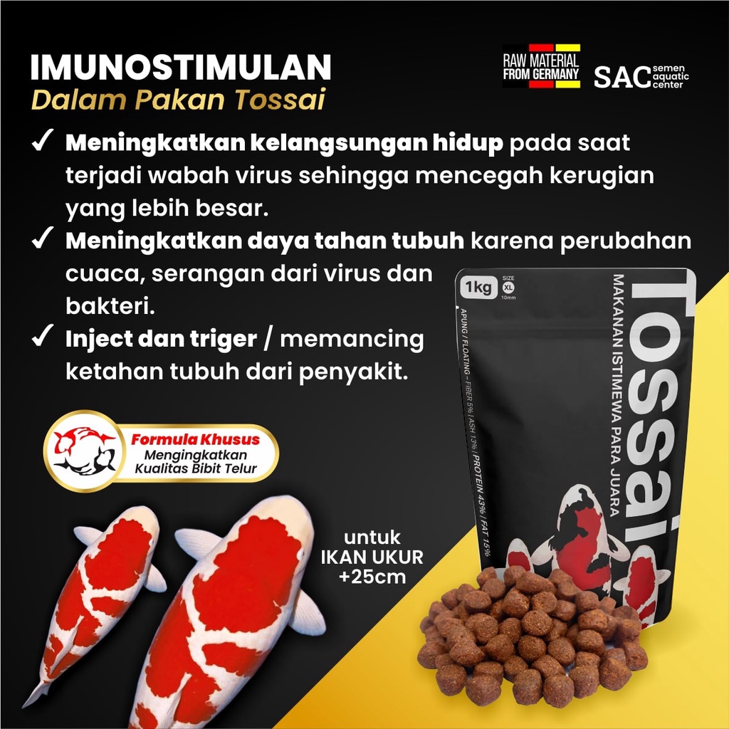Tossai Pelet Pakan Premium Indukan Ikan Koi 8mm - 9mm Premium Grow Pembesaran Growth