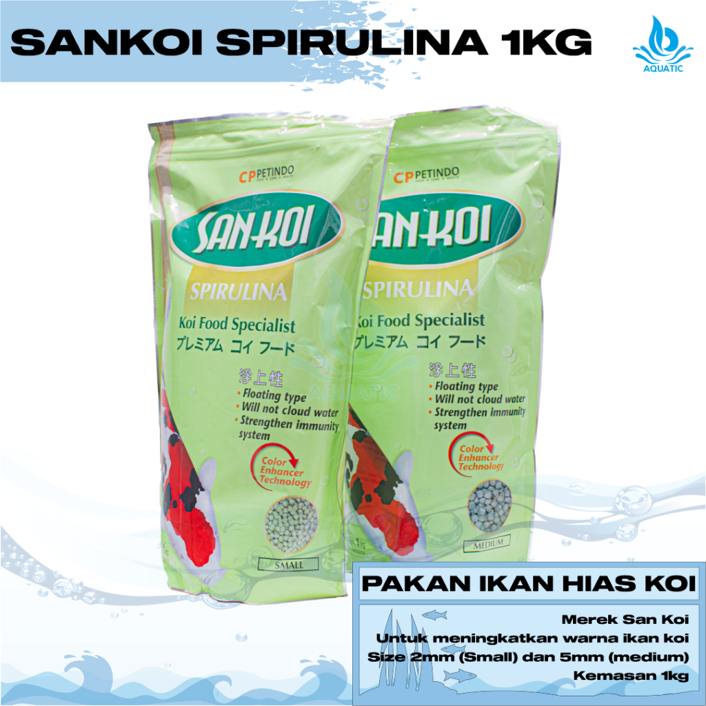 Makanan Pakan Ikan Koi Sankoi Spirulina dan Growth CPPETINDO S 2mm & M 5mm 1KG