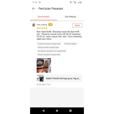 Pakan Pelet Makanan ikan Koi Sumo grow /1kg