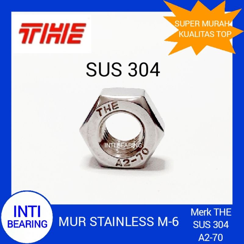 MUR STAINLESS M6 MERK THE SS SUS 304 HEX NUT M6 x 1,0 PITCH 1.0 HIGH QUALITY