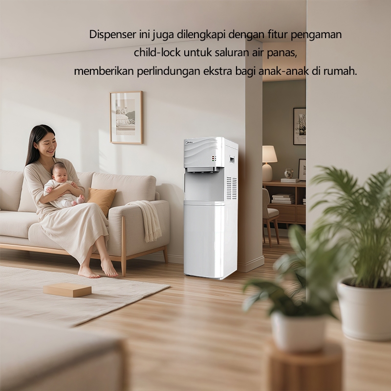 DISPENSER GALON BAWAH MIDEA YD1634W AIR PANAS DINGIN HOT COOL NORMAL GARANSI RESMI MURAH