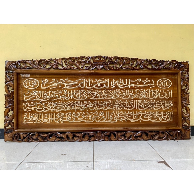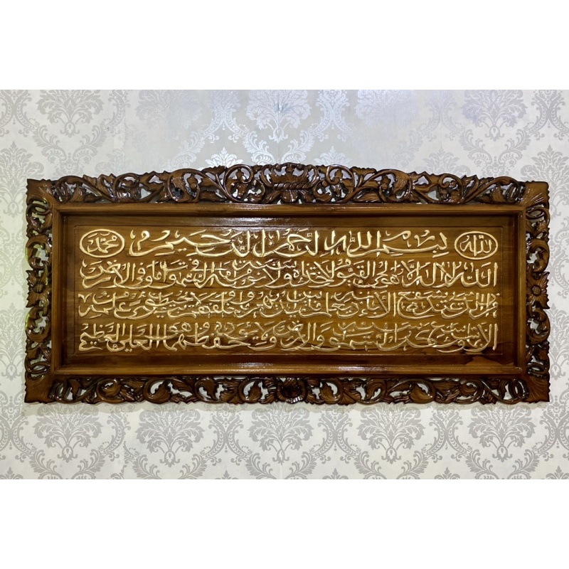 Kaligrafi Ayat Kursi 140x60 Kayu Jati Frame Loster Classic