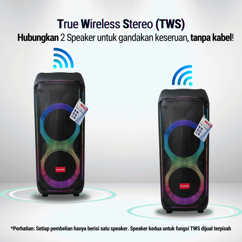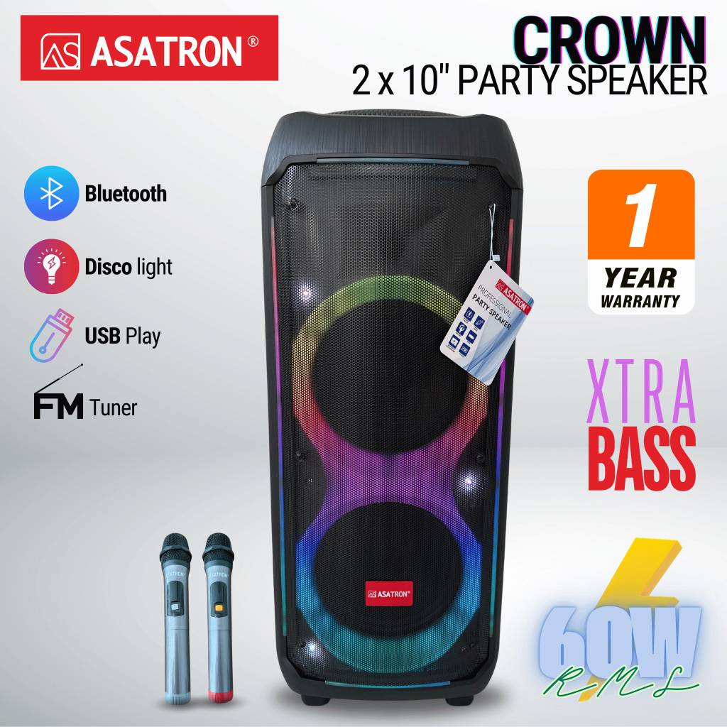 Asatron Crown Dual 10 Inch Bluetooth Party Speaker with 2 Wireless Mic