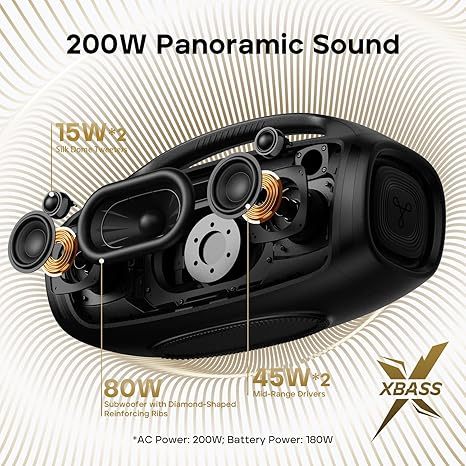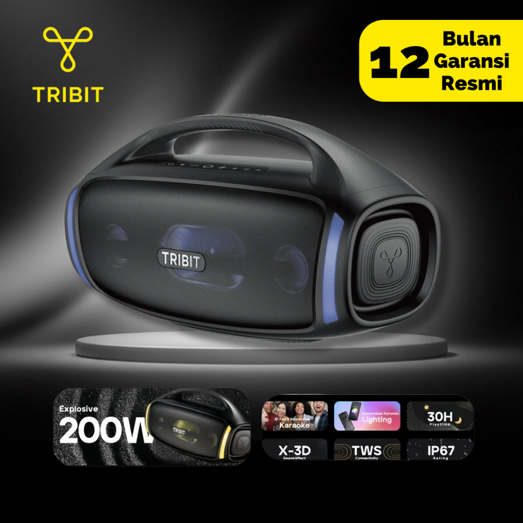 Tribit StormBox Blast 2 Speaker Bluetooth Karaoke Boombox 200W Subwoofer Outdoor IP67 30H LED Mic