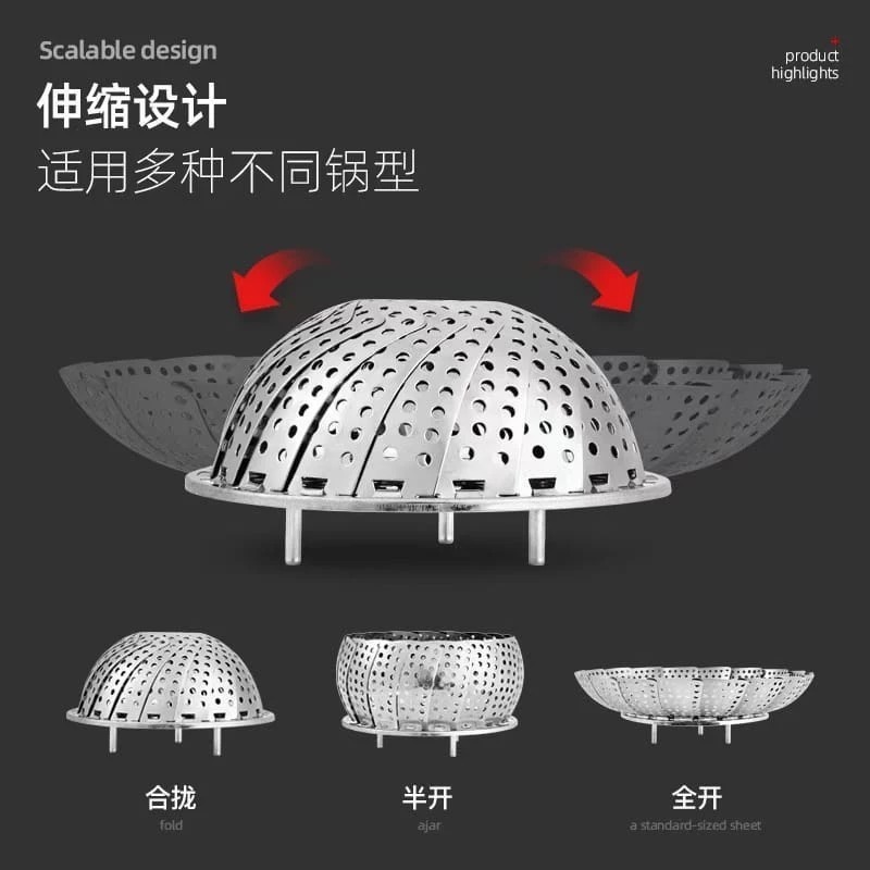 Alat Kukusan Stainless Serbaguna Ukuran 12.5cm x 22.5cm Mekar Steamer Panci Kukusan Stainless Lipat Flexibler