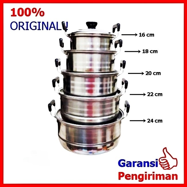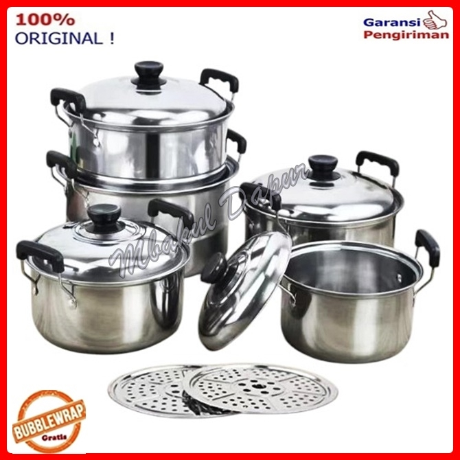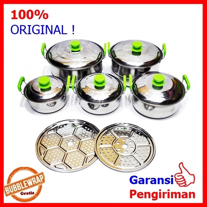 Panci Stainless Set Panci Kukus Steamer Panci Set Per Set 5 Panci Plus 2 Sarangan