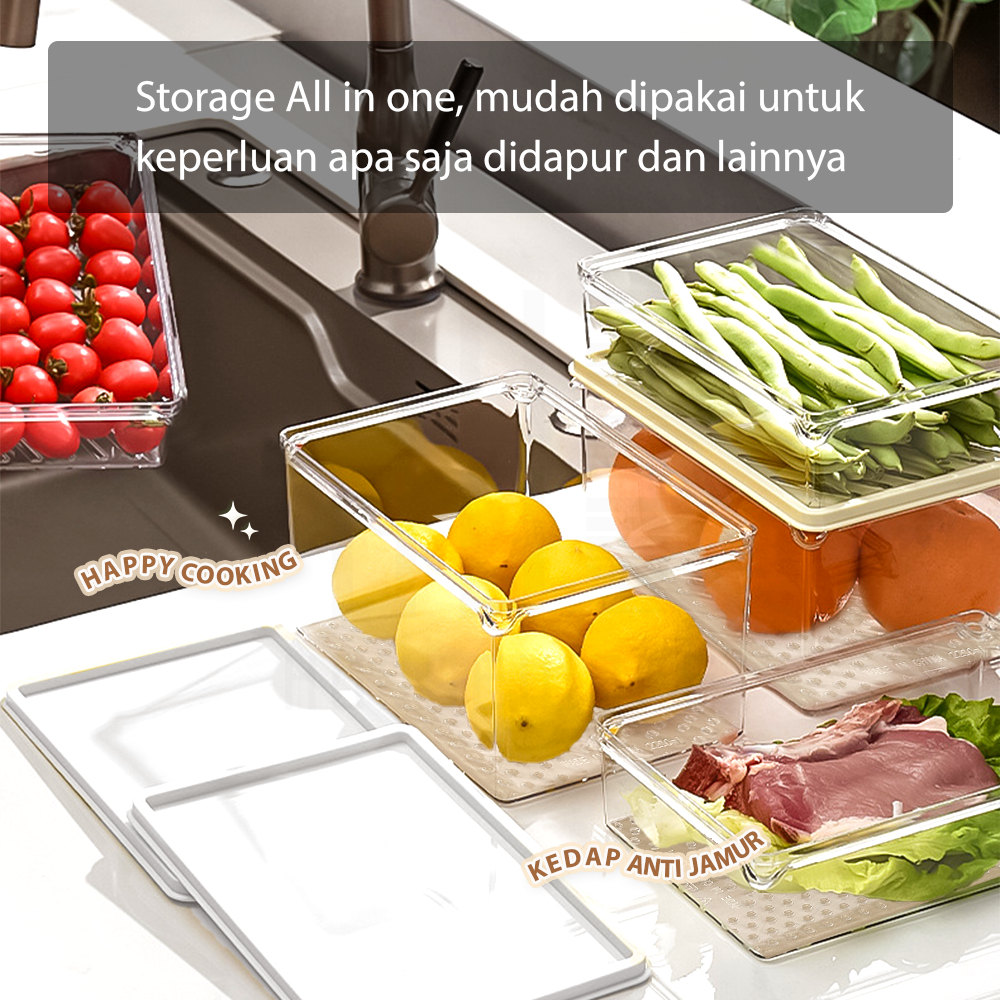 HUGO Kotak Penyimpanan Kulkas Akrilik Tebal Tempat Buah Sayur Dapur Food Grade Wadah Penyimpanan Serbaguna Transparan
