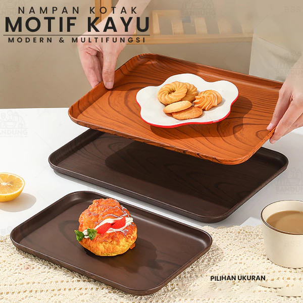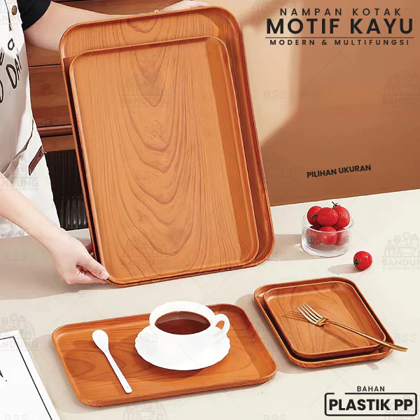 Nampan Baki Tray Plastik PP Kotak Saji Makanan Minuman Motif Kayu Elegan Cafe Restoran Multifungsi