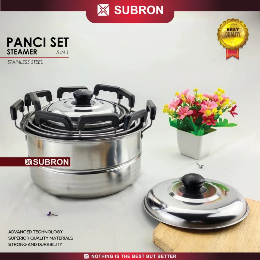 SUBRON Panci 5 Set + Tutup Sainless 5 Set + 2 Pcs Saringan / Panci Set 5