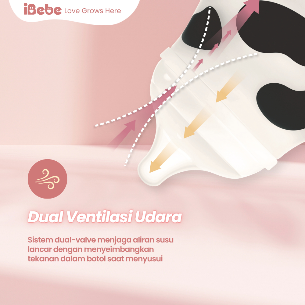 New Born+gratis kaoskaki Ibebe Botol Susu Dot Bayi Silikon Motif Sapi – 3pcs Sikat Botol | Leher Lebar | BPA Free | Ant