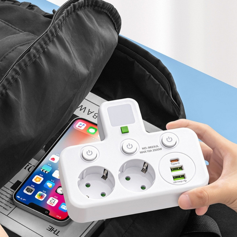【】2500W Power Strip Wall Socket Stop Kontak 7IN1 Stop Kontak Multi Outlets Expander EU 3 Power Sockets 2 USB Charger Nig