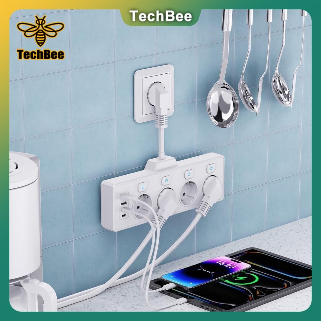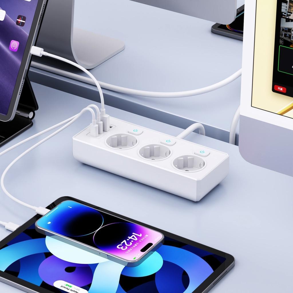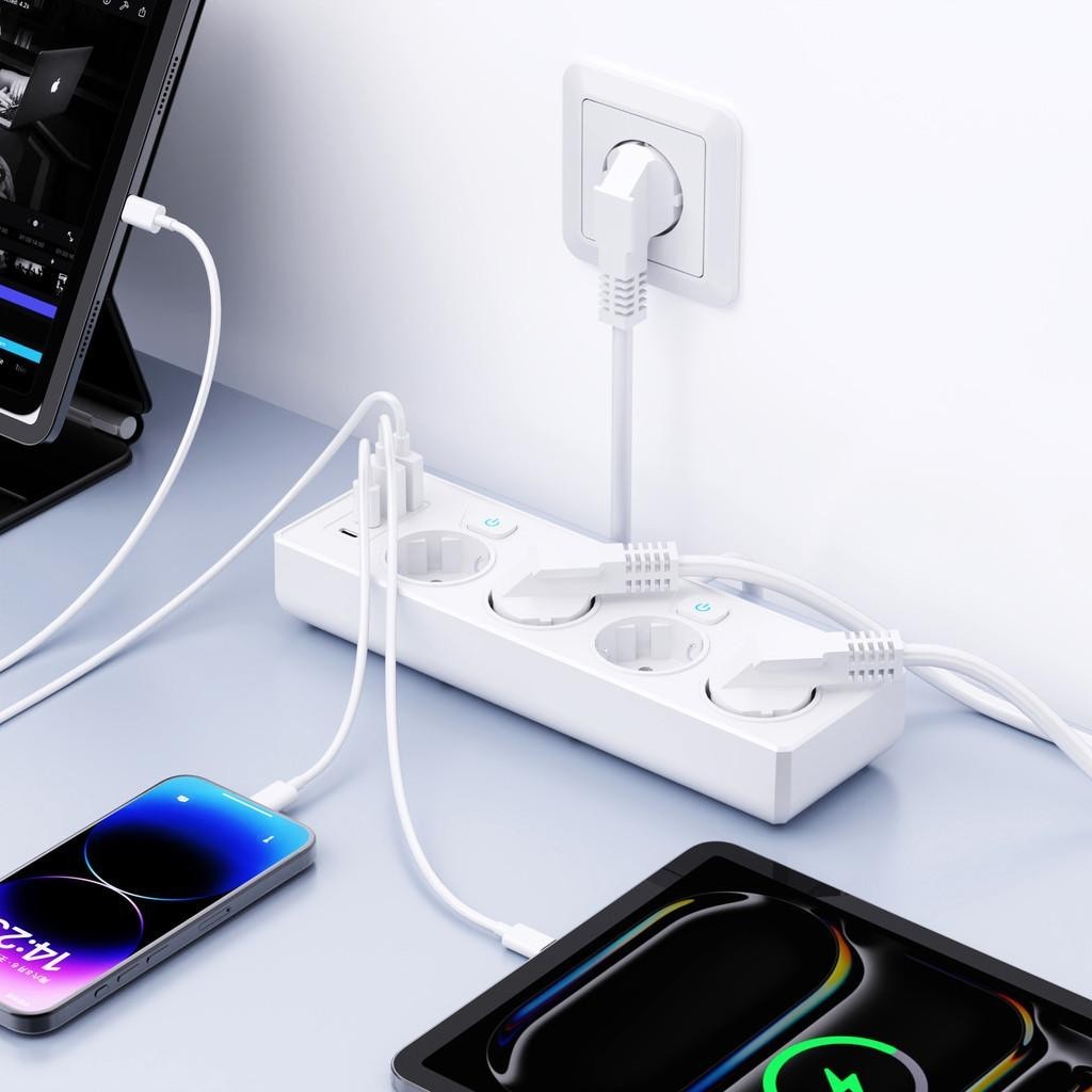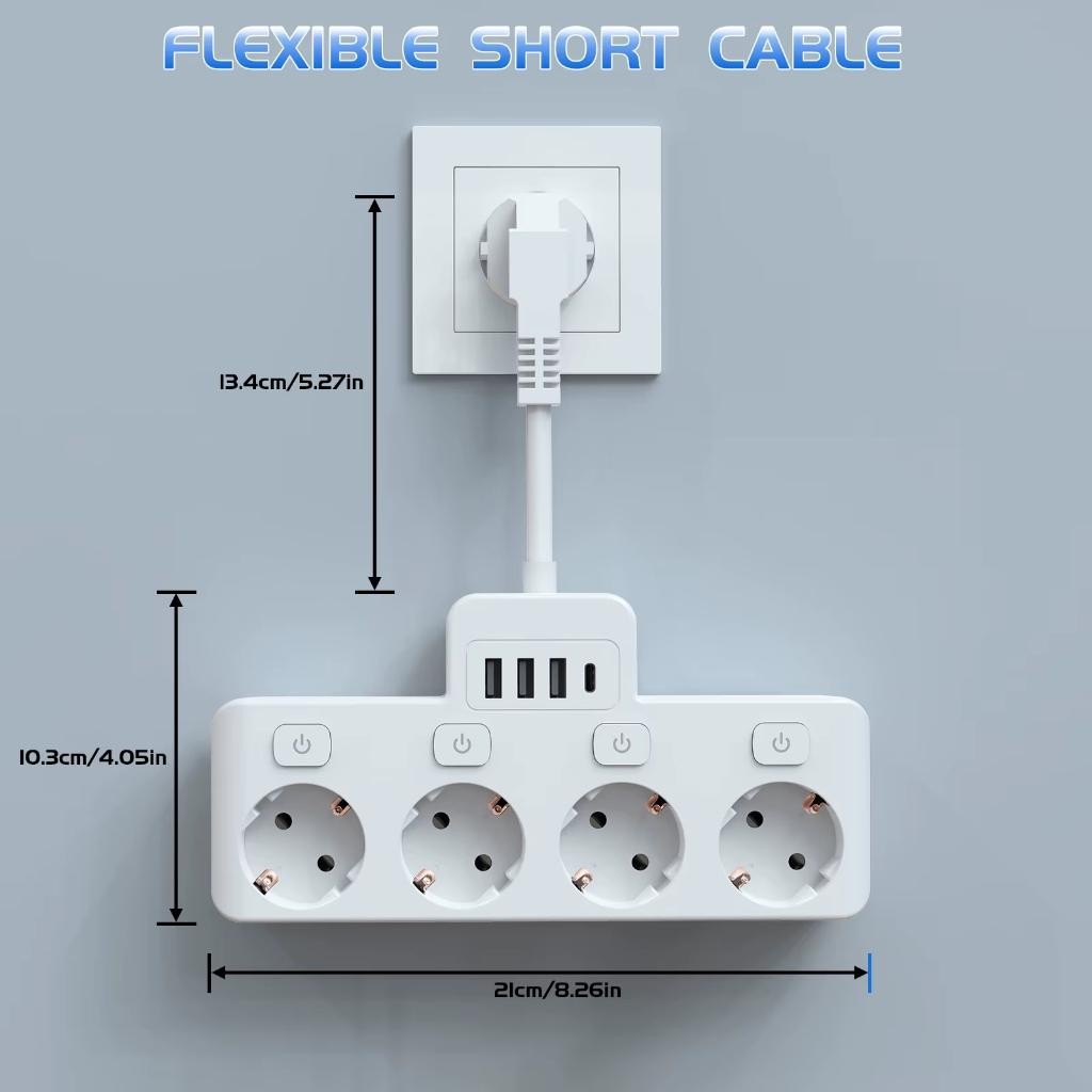Stop Kontak 4 Colokan AC + 3 USB-A & 1 USB-C - Stabilizer Listrik Adaptor dengan Saklar Home