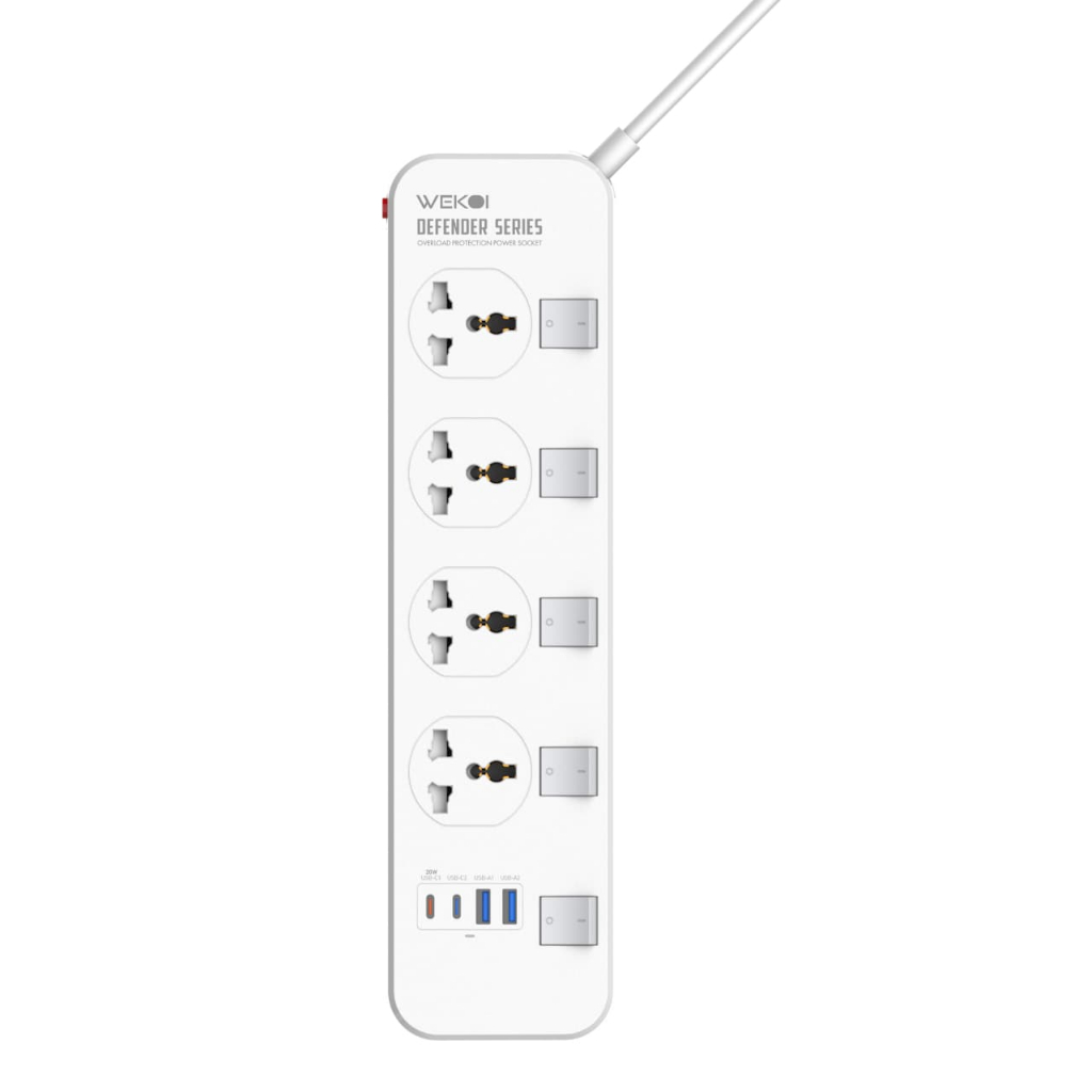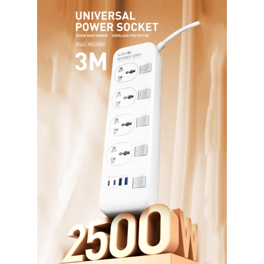 WEKOI Power Socket WSC4408C 4 Outlets 2 USB-C 2 USB-A Support PD Maximal Power 2500W Panjang Kabel 3 Meter