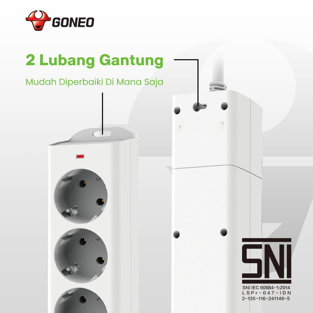 GONEO - G1050 Stop Kontak Saklar On Off Panjang 1,5/3/5 Meter 5 Lubang Terminal Kuningan Anti Petir SNI Gongniu