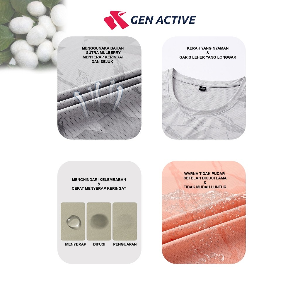 GEN ACTIVE Kaos Running Pria Ice Silk Pakaian Olahraga Cowok Quick Dry Baju Gym Fitness Breathable